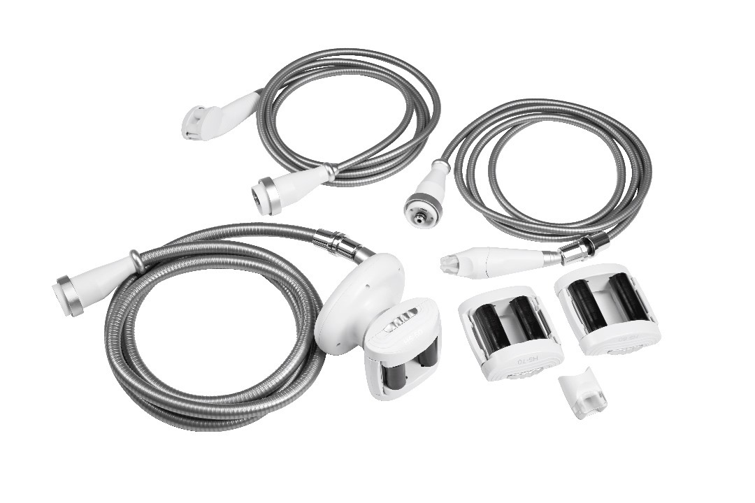 Głowica do ciała wyposażona jest w 3 wymienne nasadki masujące o różnych rozmiarach, które umożliwiają indywidualne dopasowanie do konkretnych partii ciała. Głowica posiada ergonomiczny kształt i wyposażona jest w dotykowy ekran umożliwiający precyzyjne ustaienie parametrów podciśnienia, prędkości rolek i kierunku pracy.