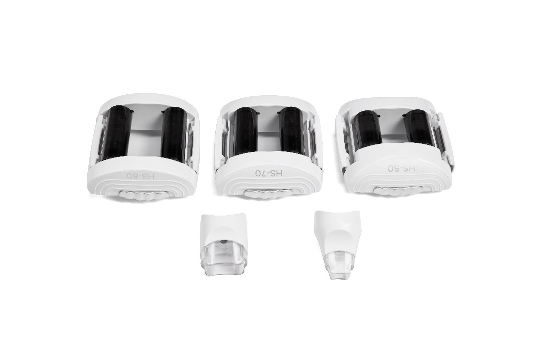 2 głowice zabiegowe do ciała (z 3 wymiennymi nasadkami) i głowica do twarzy (z wymiennymi nasadkami).