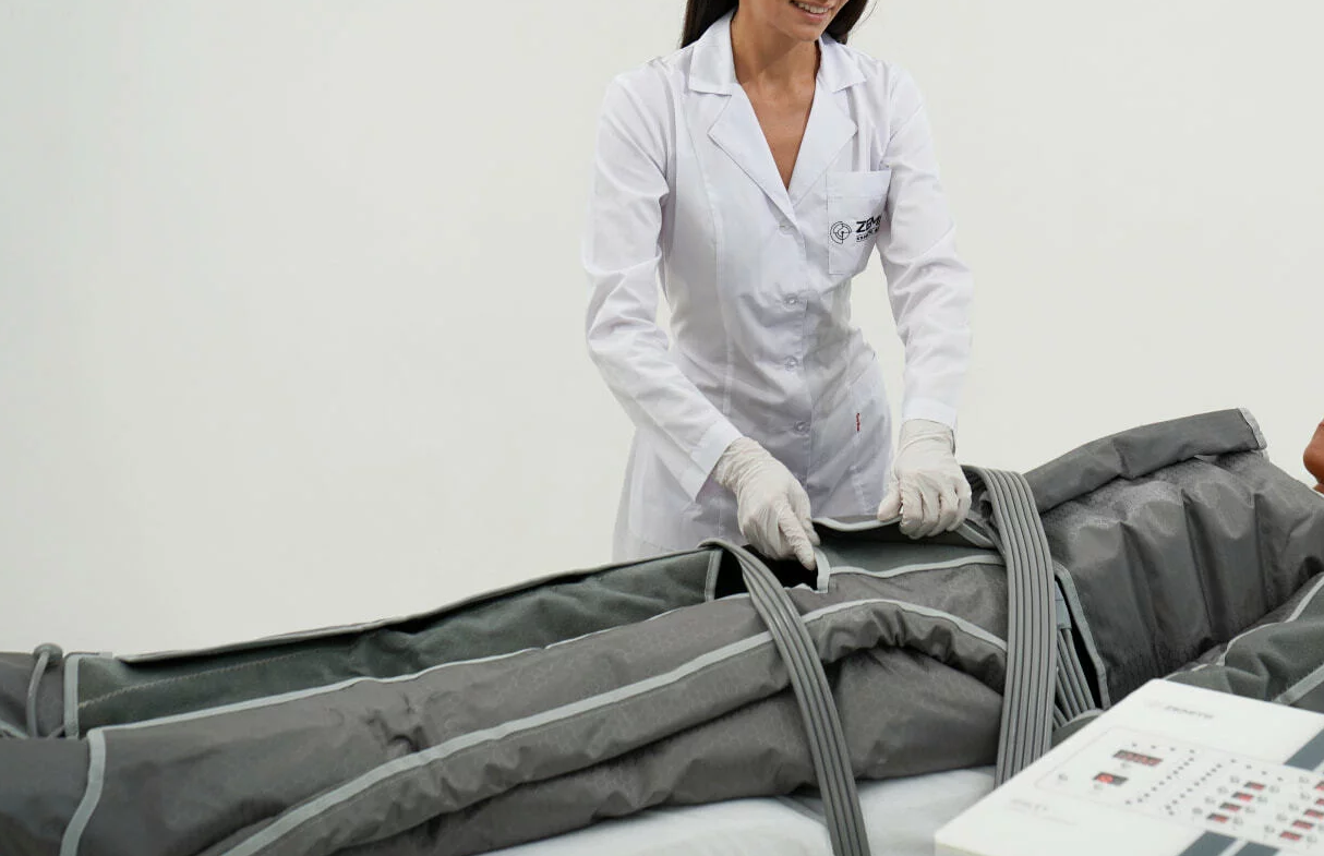 Zabieg wykonywany jest z wykorzystaniem specjalnego kombinezonu złożonego z pustych komór, które stopniowo wypełniają się powietrzem.