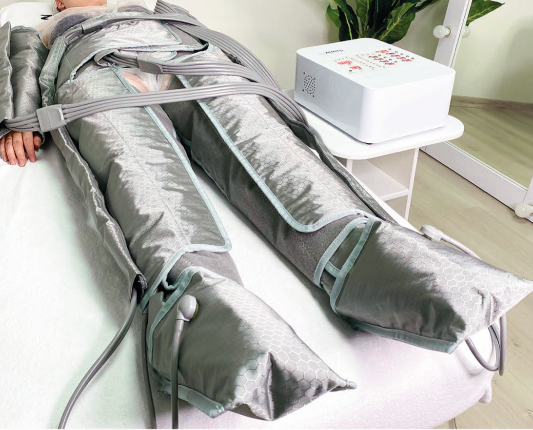 Celem presoterapii jest poprawienie krążenie limfy w organizmie. Jest to masaż sprężonym powietrzem całego ciała lub wybranej partii ciała np. brzucha lub nóg.